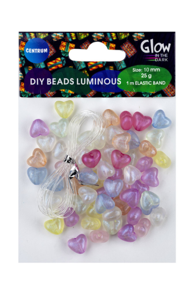ΧΑΝΤΡΕΣ ΣΕΤ ” HEARTS ” GLOW IN THE DARK με λάστιχο 1μ.διαμ.10mm 25g