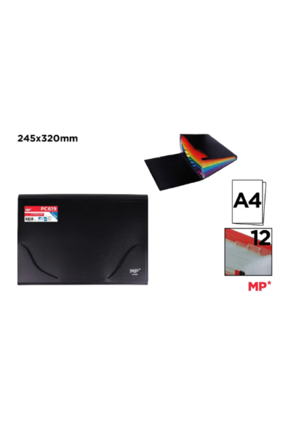 Γραμματιοθήκη Α4 12 θέσεων με Λάστιχο Mαύρη