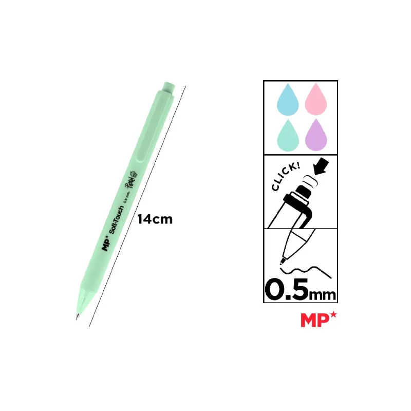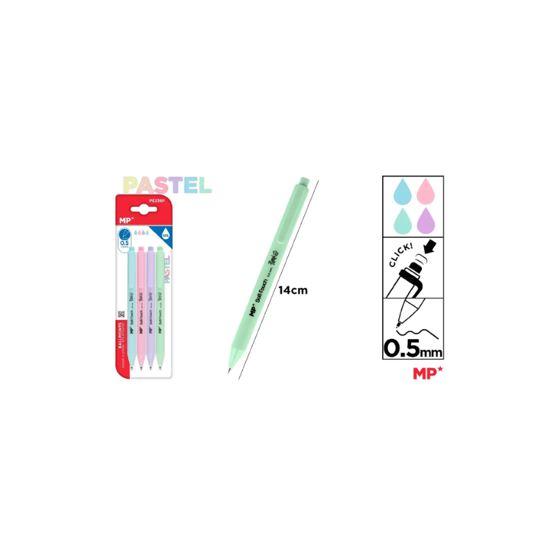 Στυλό Ball Pen Soft 0.5mm με Κουμπί & Grip 4 χρώματα Pastel