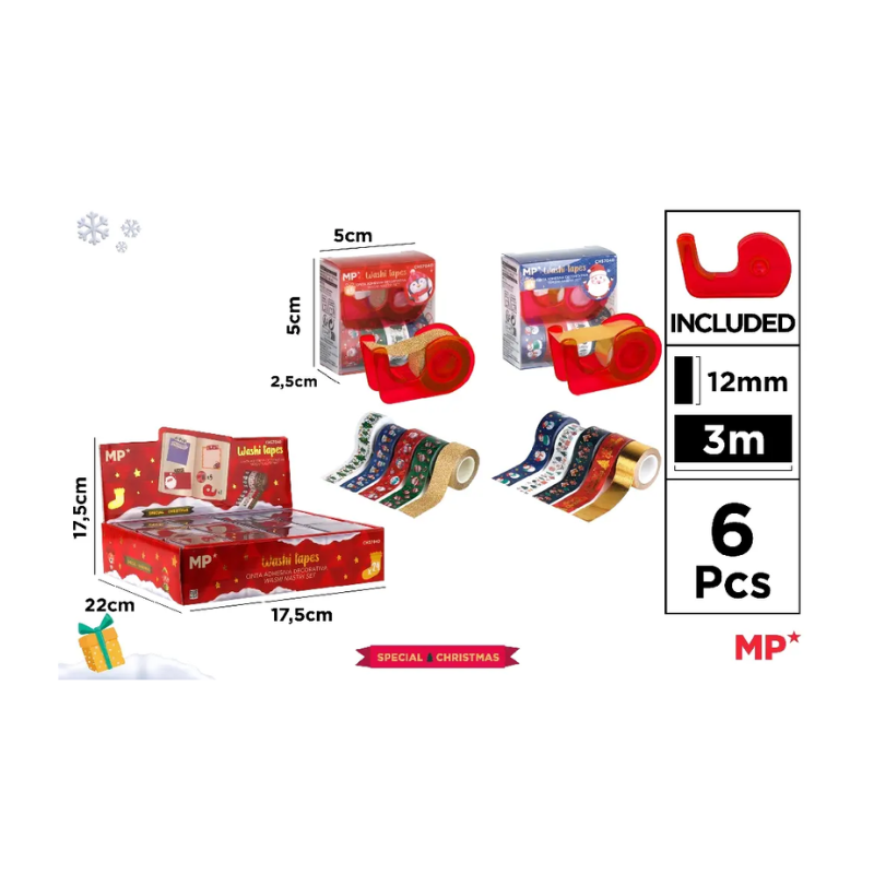ΒΑΣΗ ΜΕ 6 ΤΑΙΝΙΕΣ ΔΙΑΚΟΣΜΗΣΗΣ 12mmx3μ CHRISTMAS