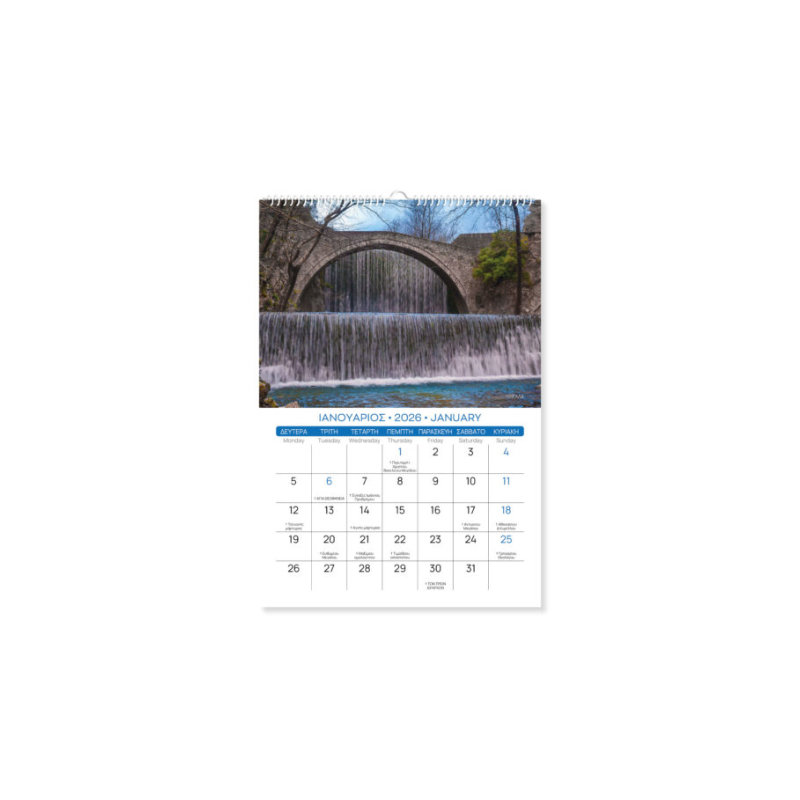 Ημερολόγιο Τοίχου Σπιράλ Ελλάδα 17×25 2026